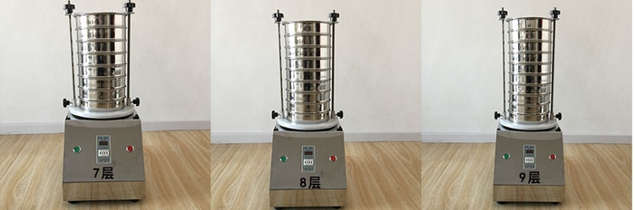 二、把标准筛具按孔径从大到小,从下到上依次叠放到托盘座上,由凹槽或定位螺丝对标准筛具进行定位。